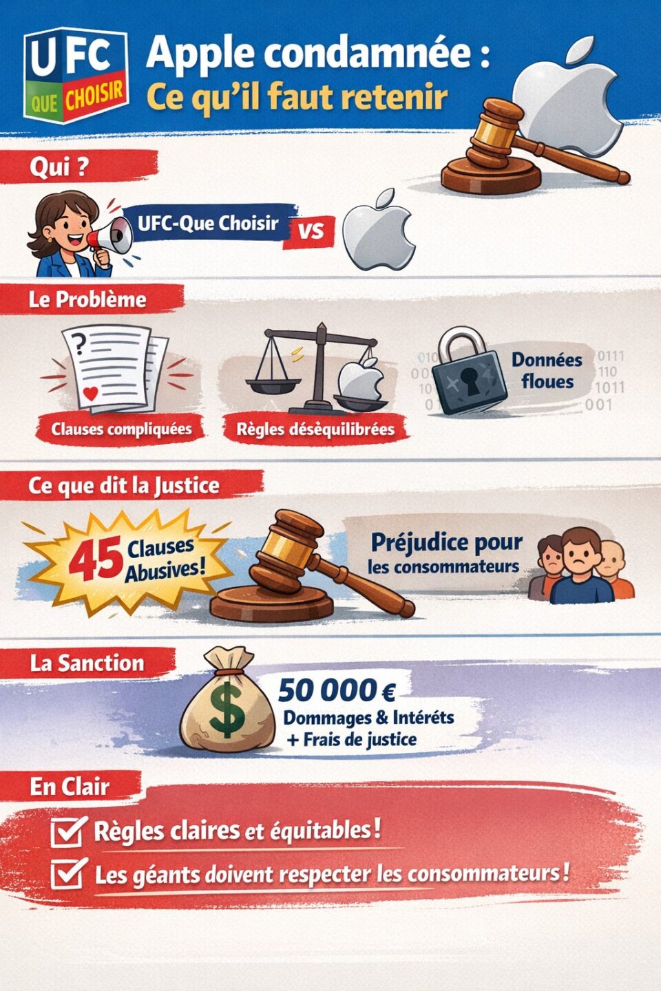 Voici un résumé synthétique de la condamnation d’Apple à la suite de l’action de UFC-Que Choisir :